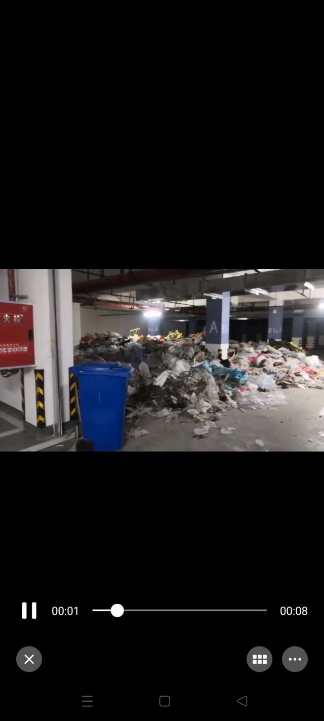 经核实,恒大翡翠湾一期地下车库已由小区业主自行打开,堆放的垃圾物业公司已清理。后期,业主装修建渣堆放在地下车库建渣堆放点,由物业公司定期清运,生活垃圾在小区外设有垃圾收集点。7、8栋楼之间的出入口规划为消防通道,主要保障应急救援车辆和消防车辆通行。