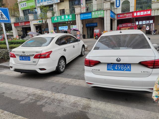 金色华庭和天誉珑城正对面人行道停车,严重影响行人视线和通行