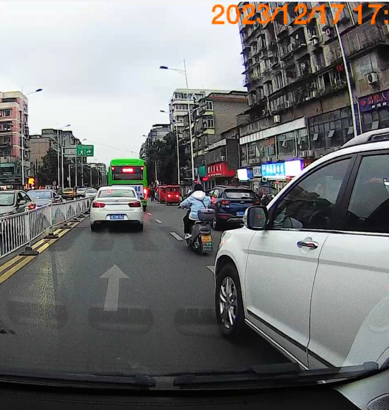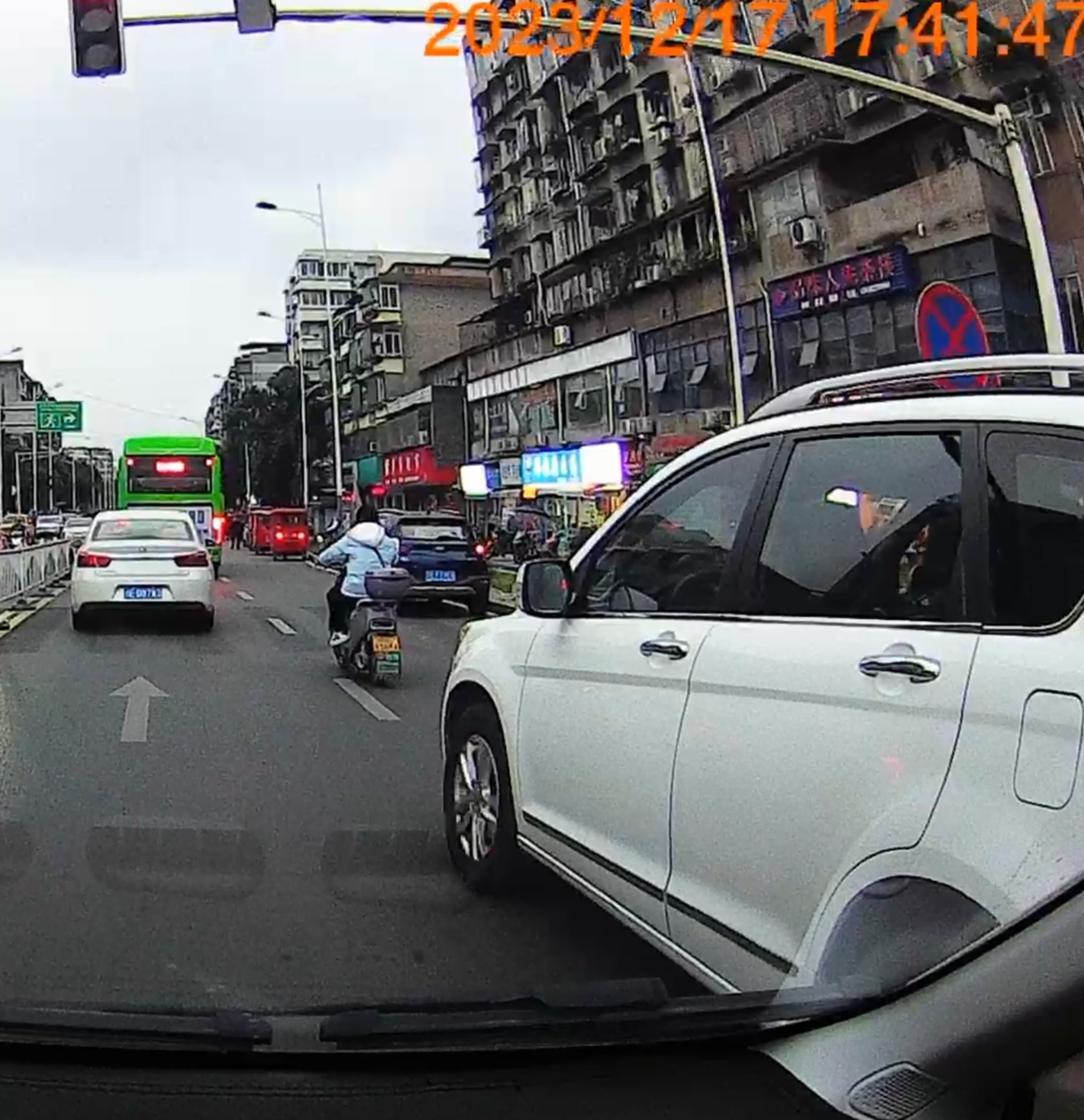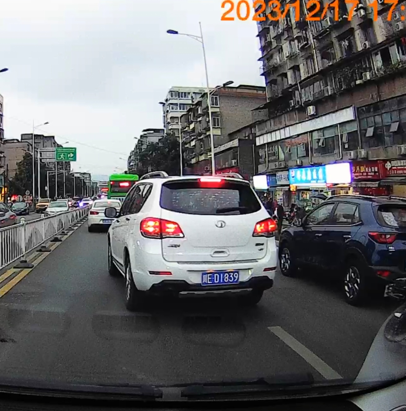 下午17:40分,高坝红绿灯往泸化中学方向送孩子上学,本来就车多,车都在有秩序缓慢过,川ED1839不顾我按喇叭,车速又慢,就要别过来,开到前边去了还急刹,这种人请交警大队管制一下,反应慢1秒不到就撞上了!