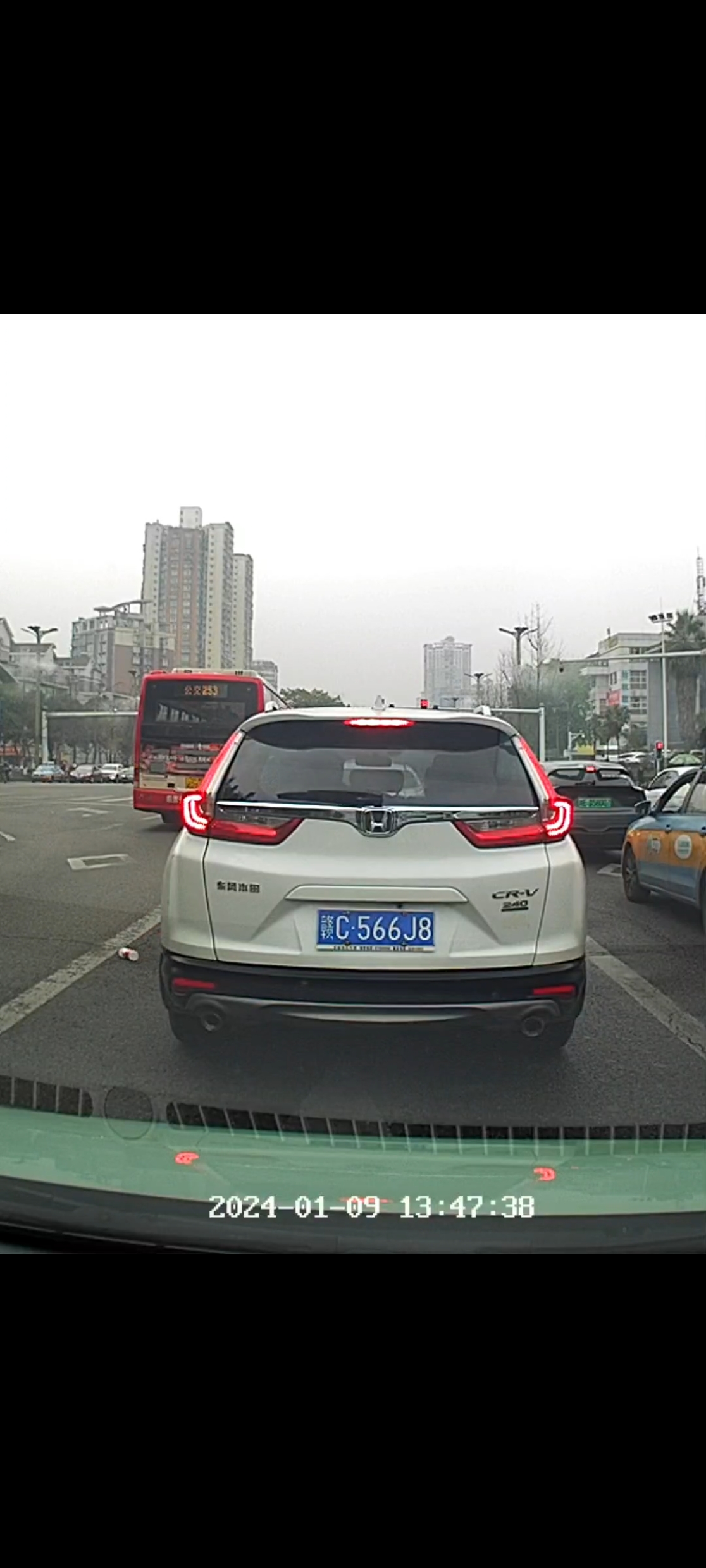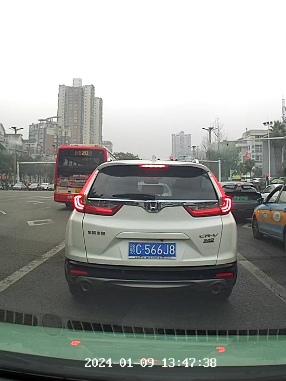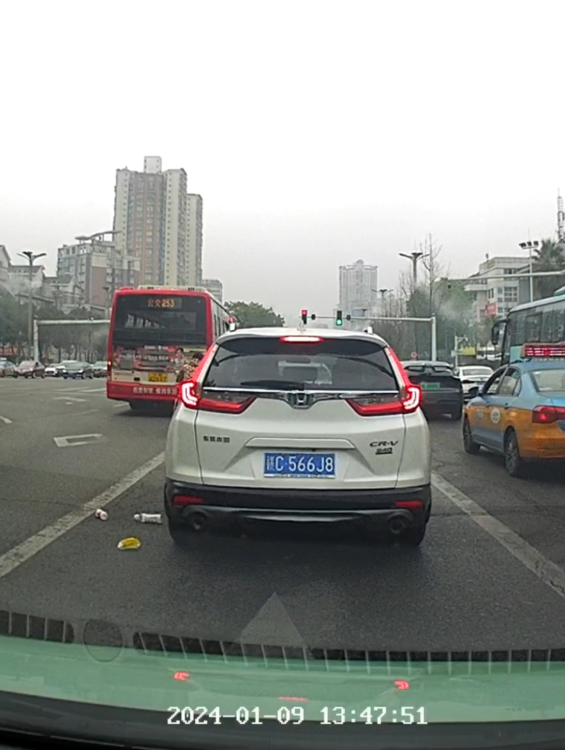 2024年1月9日中午,龙马潭区政府门口红绿灯处,赣C566J8多次向车外抛洒垃圾