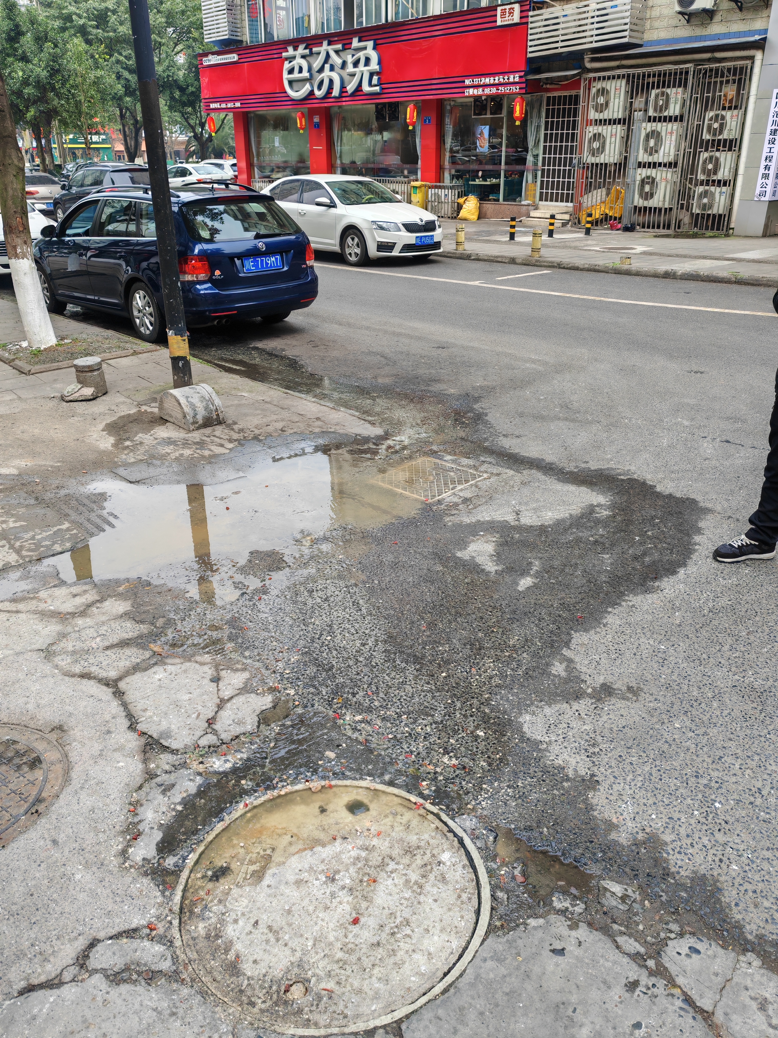 龙马潭区龙马大道与星月街(潘师傅白马鸡汤)旁,污水横流,臭味很大