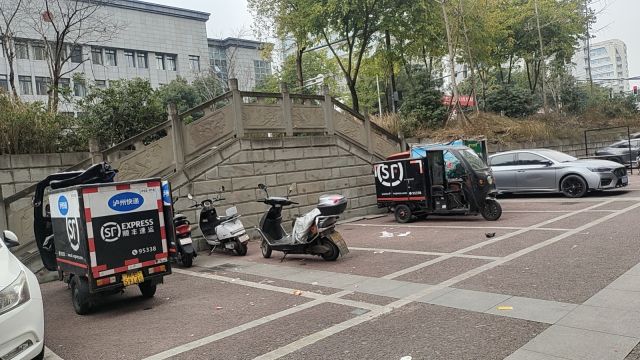 顺丰公司华阳街道向阳花香分部每天把江阳区政务中心对面向阳花香的车位霸占了,整得正常的小车要停都停不到。他们的三轮车停得乱七八糟的不说,还丢得到处都是垃圾,有个大姐每天打扫卫生,顺丰的人每天就在那儿乱丢。