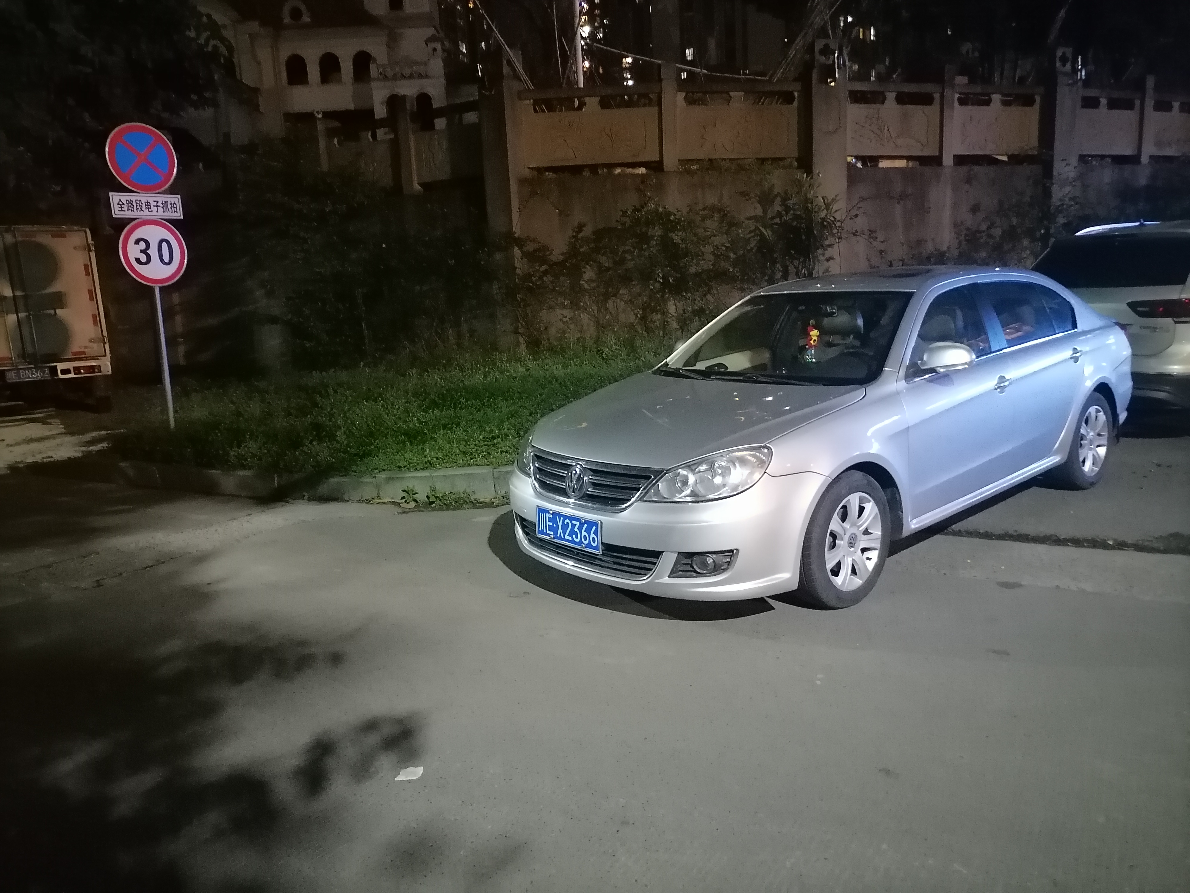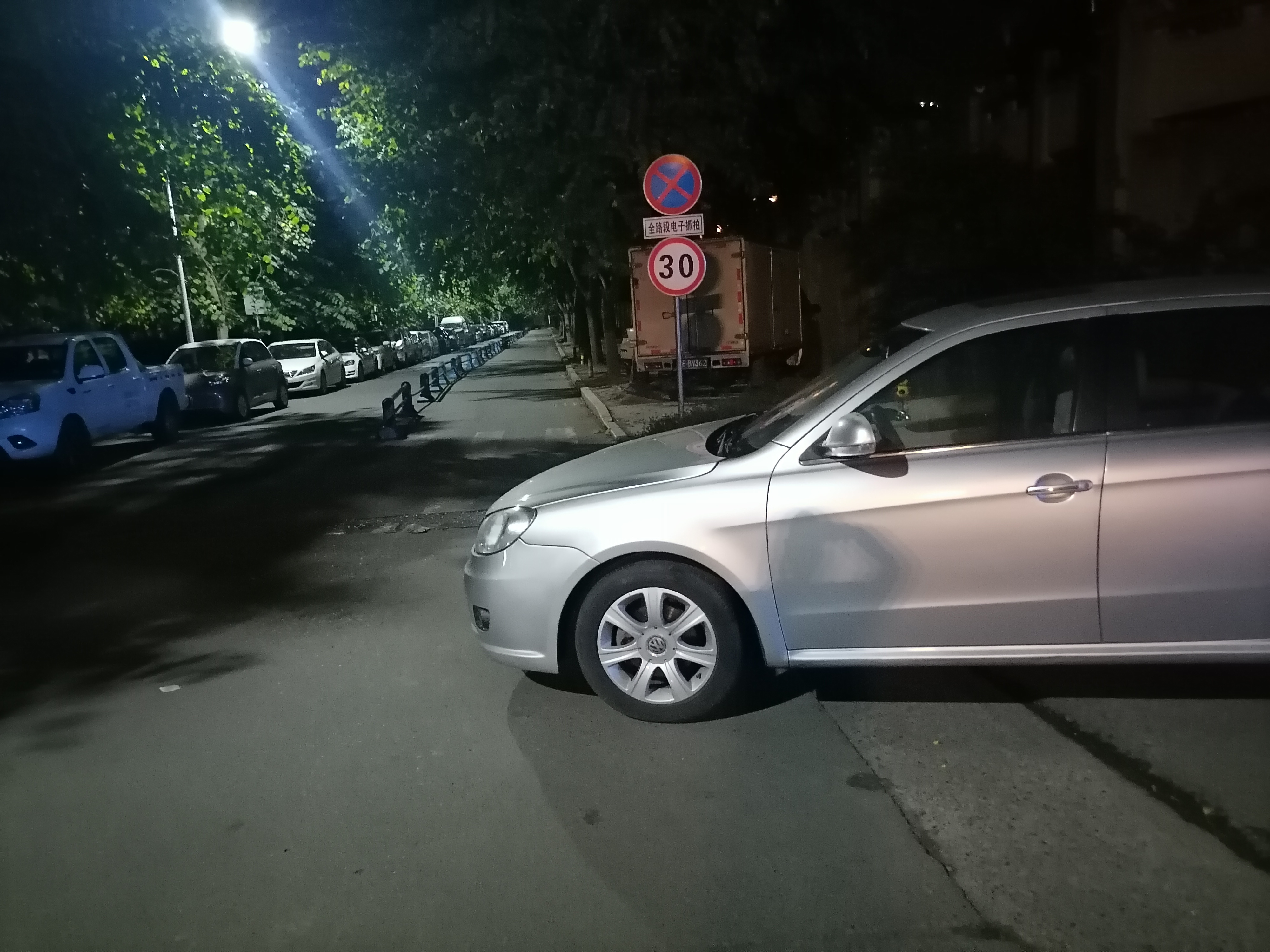 川E-X2366车头在机动车道上,严重影响车辆通行。尾部在小区出入口,而且是消防通道上,影响小区其他车辆出入。