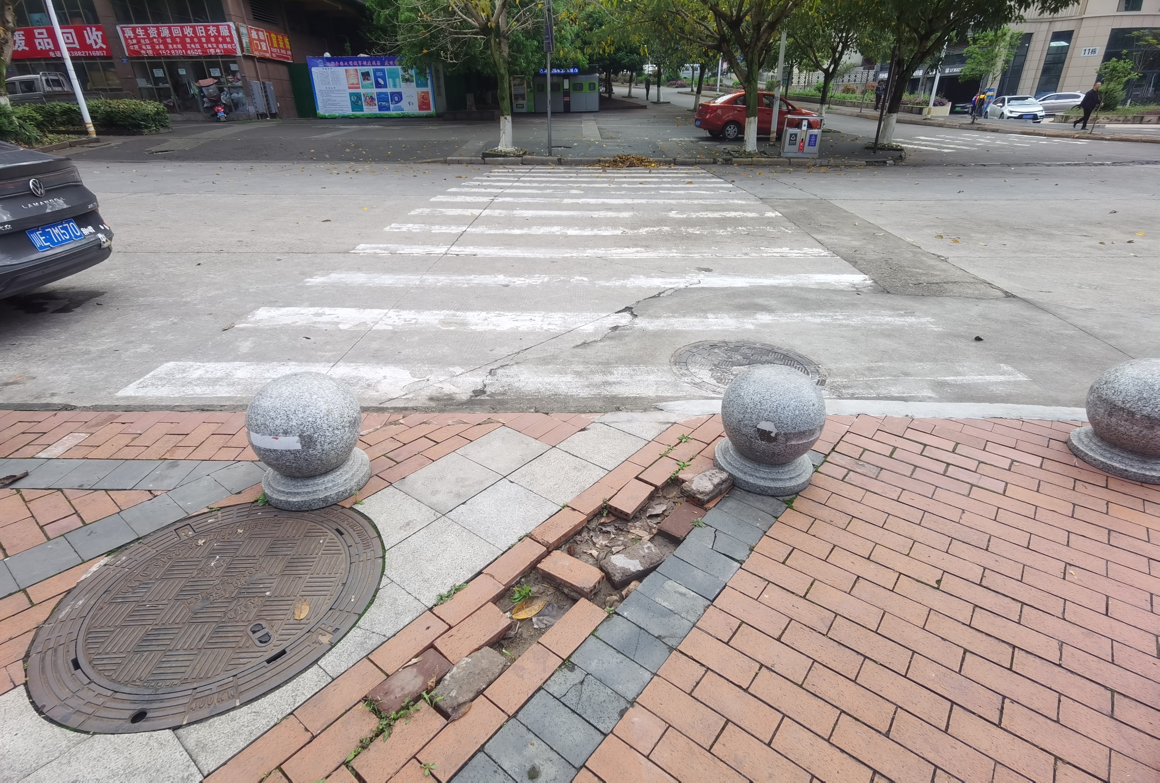 纳溪区东升街道柿子村阵地门口斑马线模糊不清,路面破损。