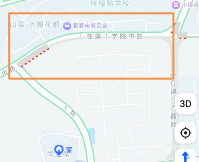 由于学院中路在建路段(学院中路与丹霞路交叉十字路口至学院中路与新建设L路交叉丁字路口,如下图)受学院中路改造工程影响,路灯至今未恢复亮化,建议在主管部门学校开学前恢复路灯亮化,谢谢!