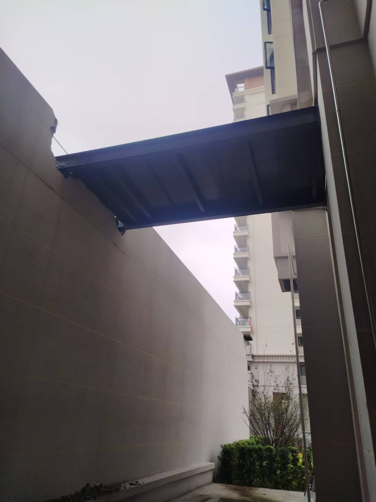 江阳区佳乐.蓝博湾六期14幢3楼,破坏门面顶护栏墙体加装工字钢楼梯通道,改变结构,给地面行人通行导致严重安全隐患,恳请相关部门核查处理。