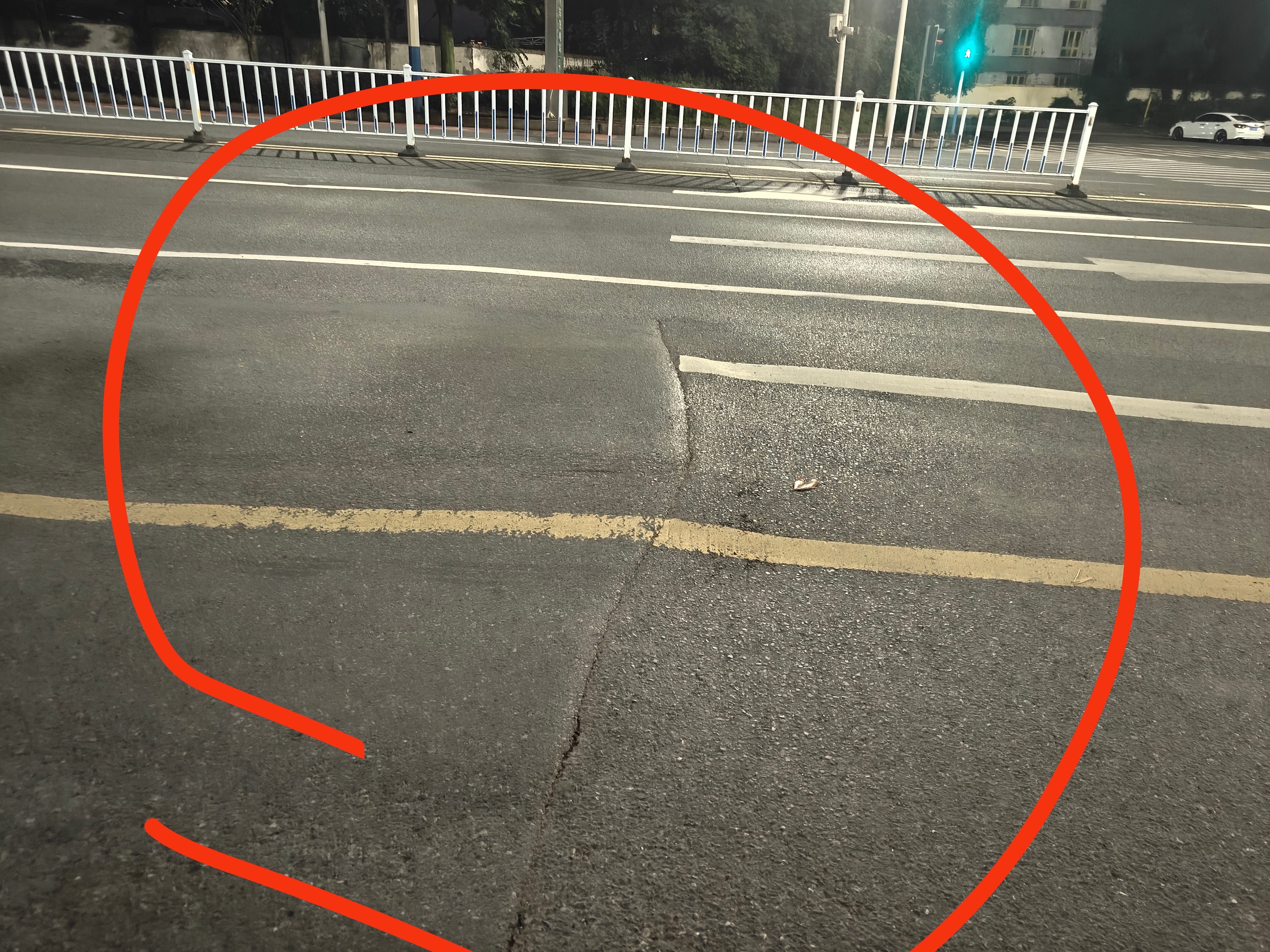 江南路四段与银沙路交叉口红绿处道路忽然起拱,起拱坡度又距离又短。导致今天我媳妇骑电瓶车的时候出现摔伤,有严重安全隐患。