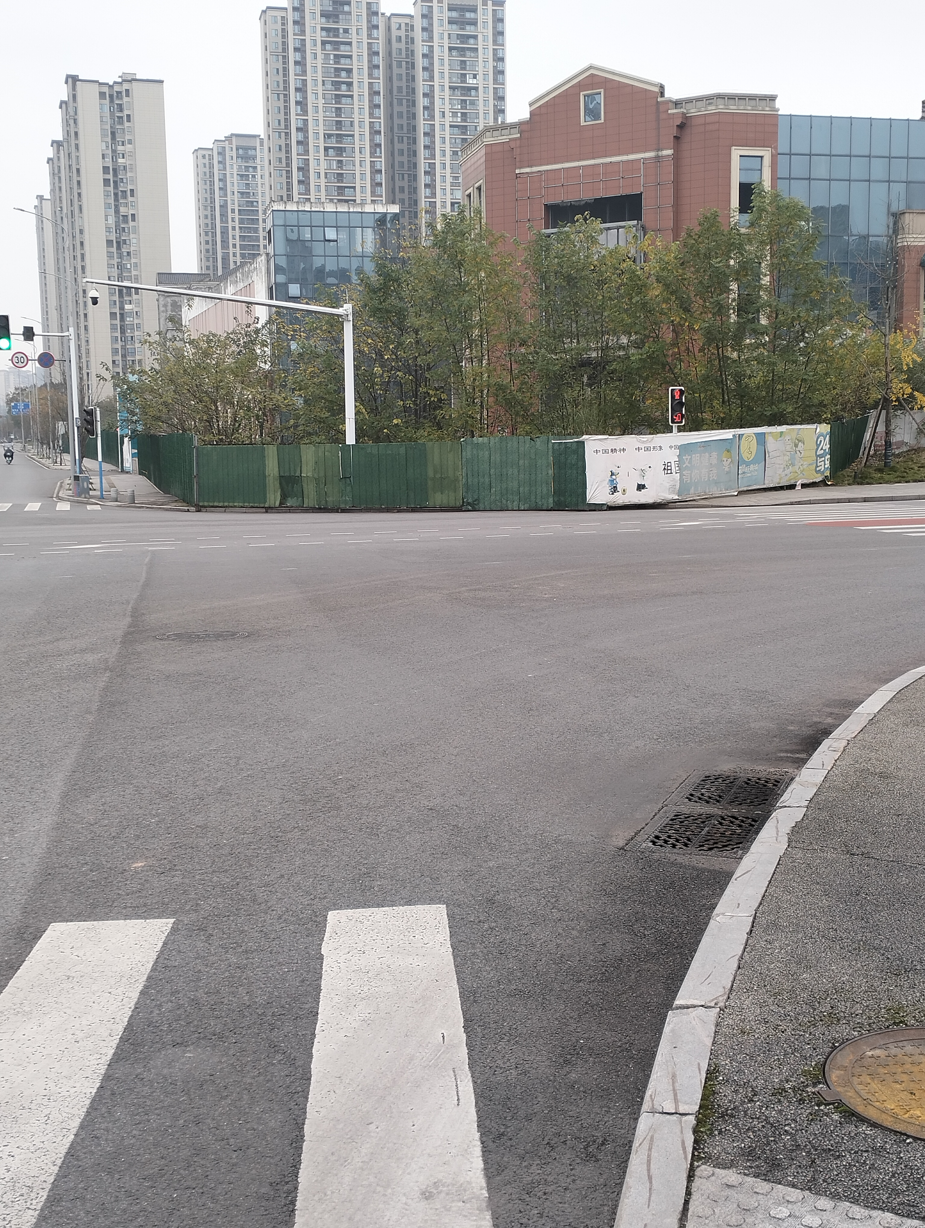 绿地城九川路与汇元路交界处人行道被拦多年,早晚放学家长和孩子很多,过路车辆右转接孩子的很多,根本看不到行人,非常危险,严重影响过路安全。