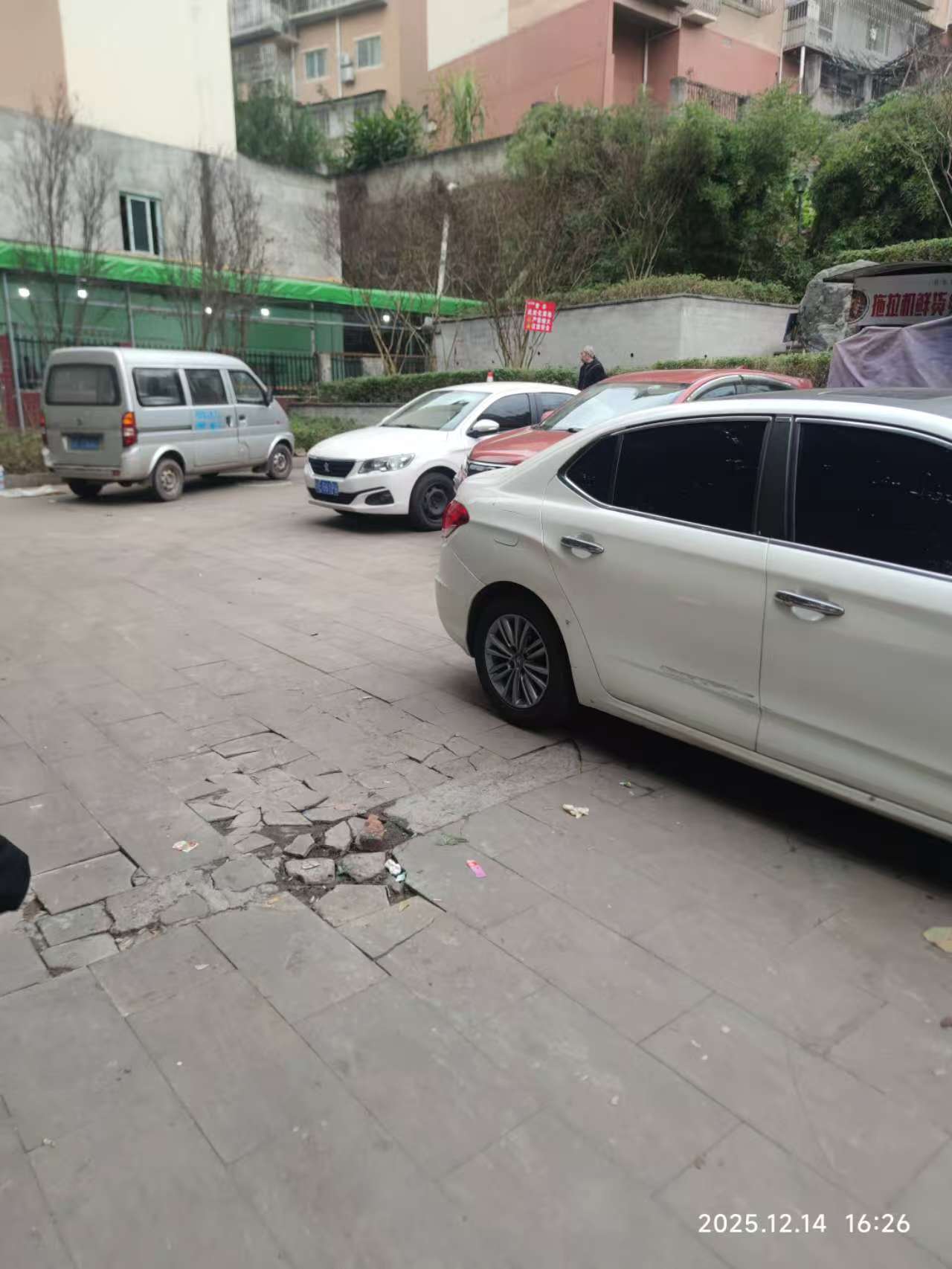 接到您的反映后,兴绿园林公司第一时间安排工作人员前往现场核查。经核实,该路段石板路面确实存在破损问题,主要原由是车辆违规停放碾压所致。